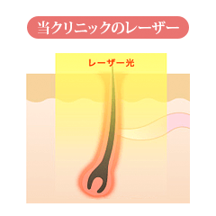 当院で使用する脱毛レーザーは他院のレーザーよりも波長が長く、毛根までしっかり熱を届けて毛が生える組織(毛母細胞)を破壊します。